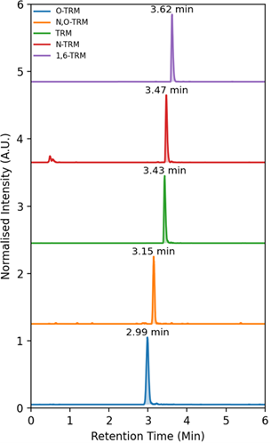 Figure 1. Separation of tramadol and its metabolites. Chromatograms are normalised and offset for clarity.