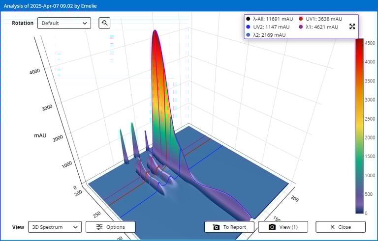Analysis view in Biotage® Selekt software displaying the 3D absorbance spectrum.