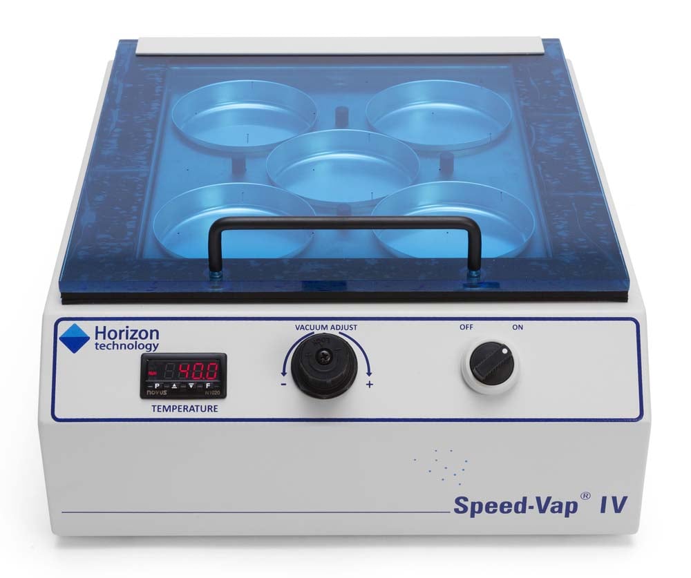 The low-temperature heating system assures consistent heating of all samples to prevent the loss of volatile analytes. The gentle airflow created by the application of vacuum accelerates the evaporation of solvent from all of the samples.